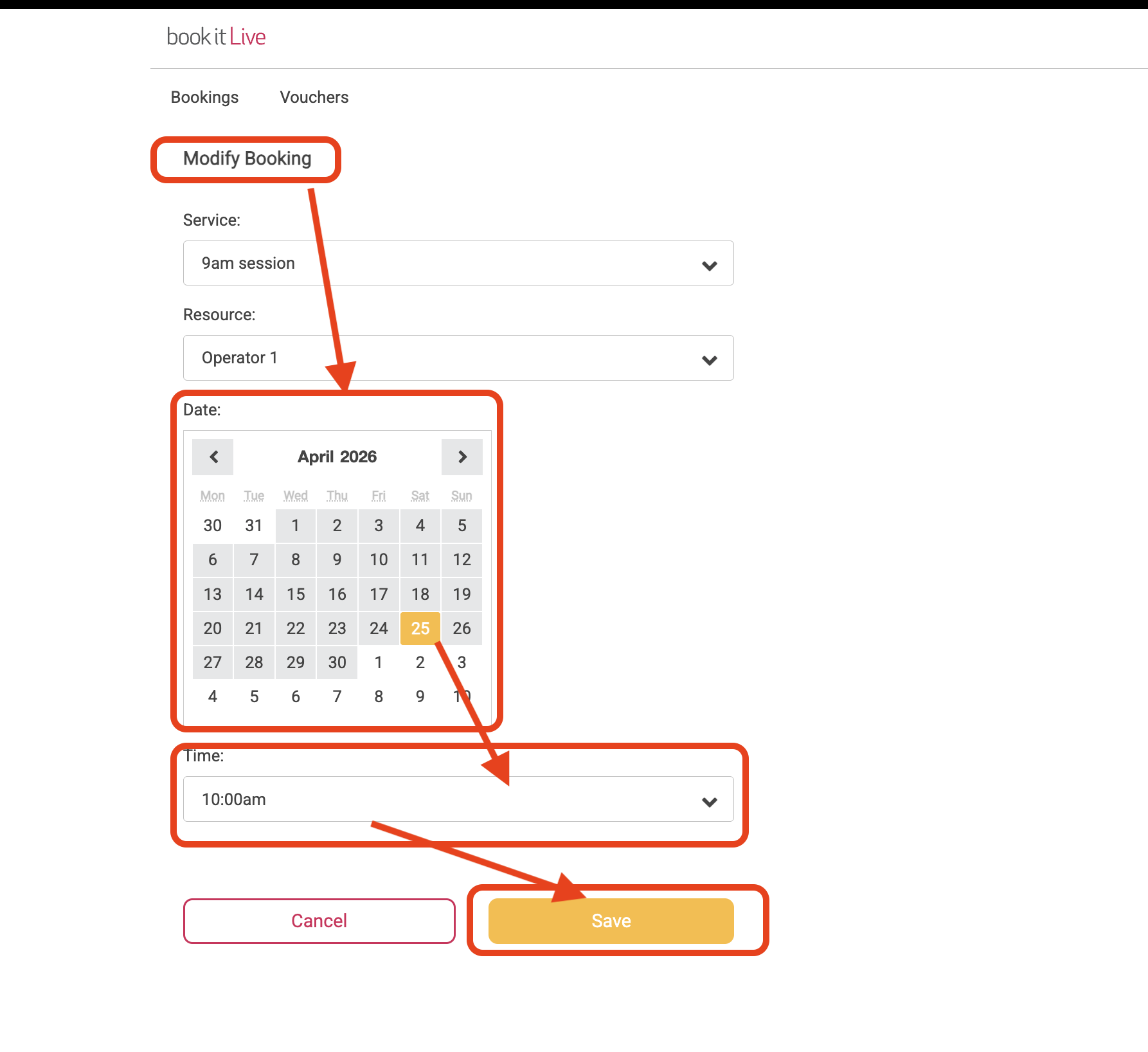 A Client/Customer can Modify their own booking by logging on to their Dashboard.